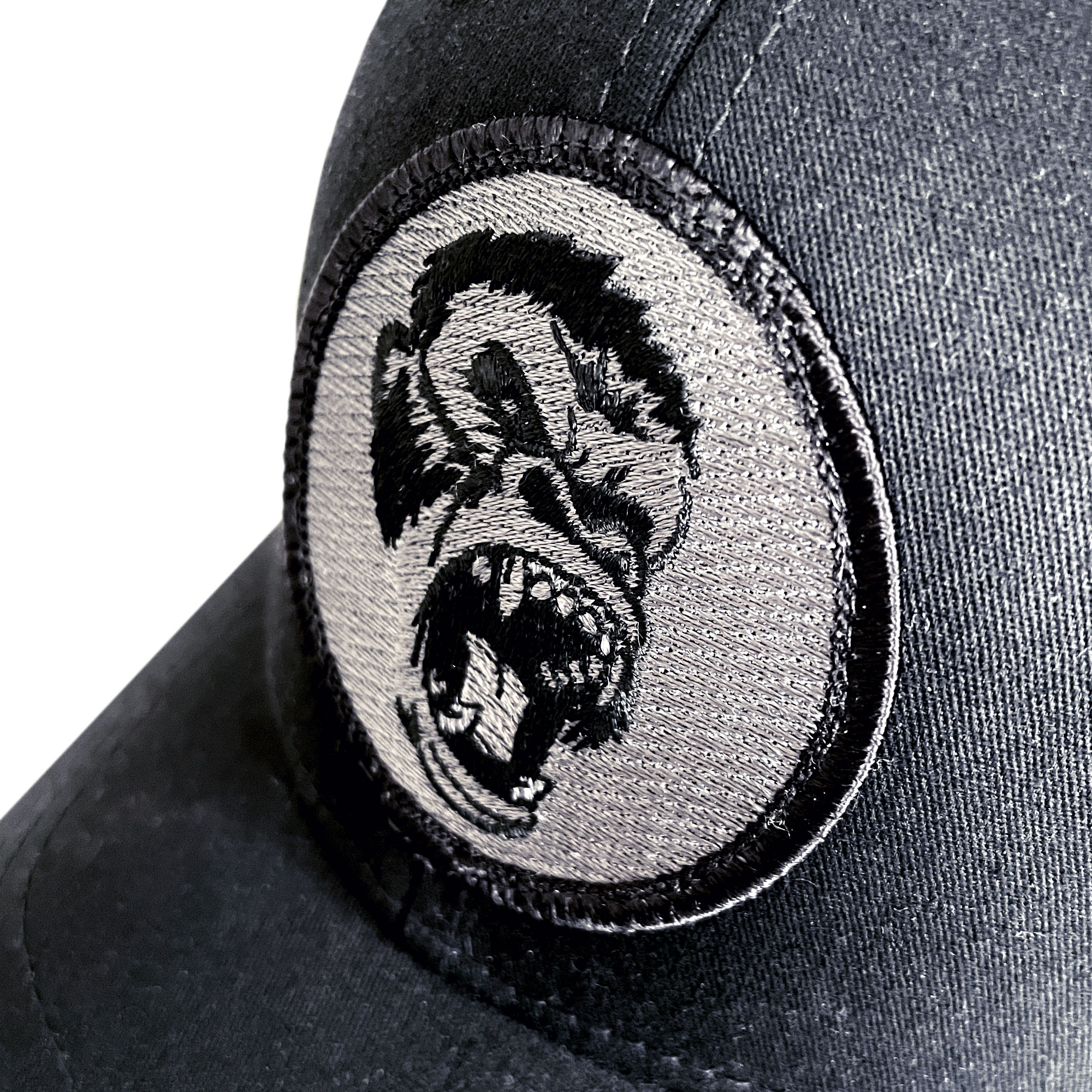 Snapback mit Netz in Schwarz. Einheitsgröße und auf alle Größen verstellbar. Das Logo in Schwarz-Silbergrau wurde als hochwertiges Patch hergestellt und aufgenäht.