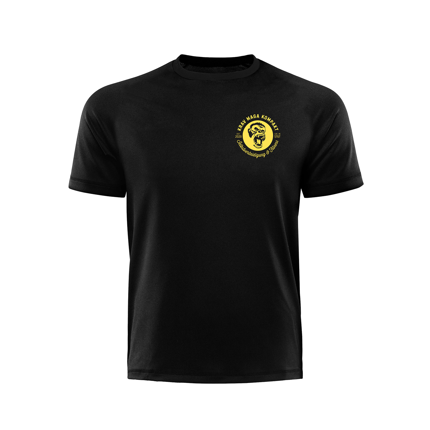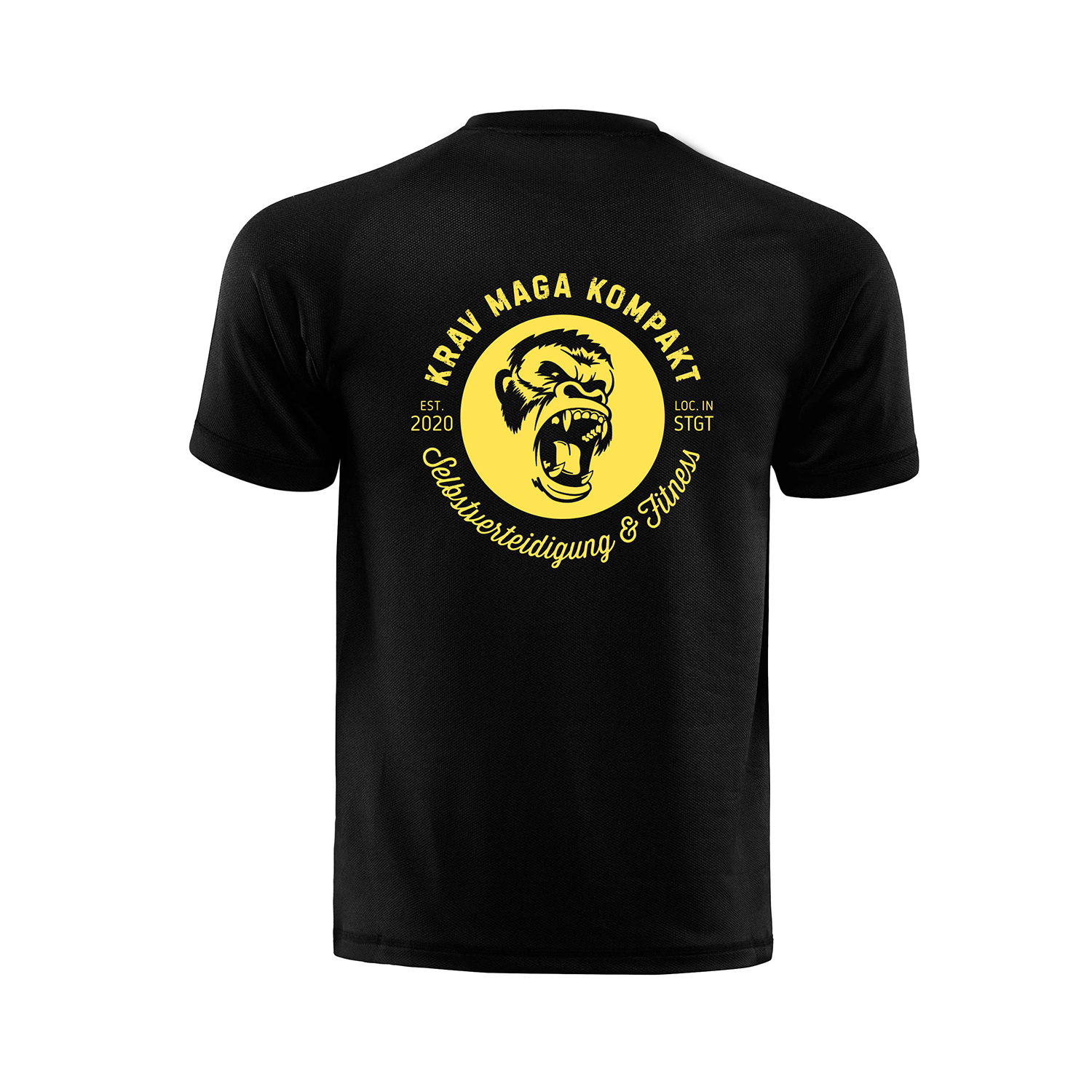 Schwarze T-Shirts mit Aufdruck in Knallgelb auf der Brust und auf dem Rücken. Die T-Shirts gibt’s natürlich auch mit den Juniors- und Kids-Logos – in den jeweils passenden Größen.